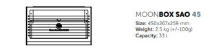Moon Box SAO perfectly complements the Titan and Tebe and SAO models, using the same mounting system on a single rail. The SAO is the same height as the IO and Tebe models, while the Titan is 20% taller. Each Moon Box model maintains the characteristic, extremely durable aluminium construction that our brand is known for.