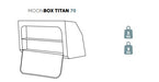 Moon Box Titan perfectly complements the Tebe and IO models, using the same mounting system on a single rail. Although Titan is about 20% taller than the IO and Tebe models, all variants maintain consistent depth and Van der Moon aesthetics. Titan offers exceptional capacity and premium features such as flexible mesh pockets, YKK locks, and a quick stationary access system. Each Moon Box model maintains the characteristic, extremely durable aluminum construction that our brand is known for. Choose Titan when you need maximum capacity without compromising on functionality, and IO or Tebe models where compact size matters.